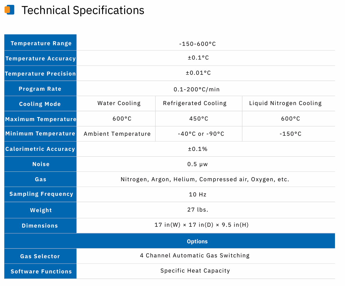 - Optional high-pressure DSC model supports measurements up to 1000 psi for advanced material studies.