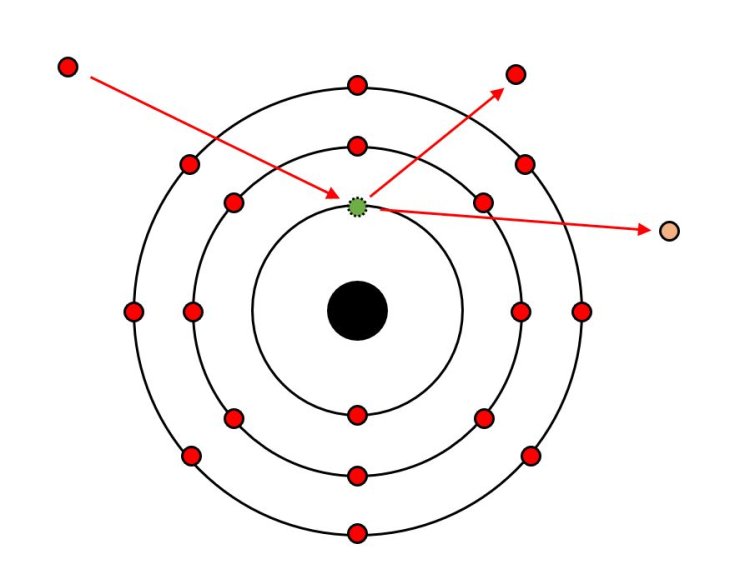 During EDS anaylsis the microscope's high-energy electron beam interacts with the atoms of the sample. This interaction has many effects, one is the ejection of an atom's inner-shell electron creating an electron vacancy, which is quickly occupied by a higher-energy, outer-shell electron. As the outer-shell electron drops to a lower-level shell it loses energy and this excess energy is emitted as X-rays (figure 2).