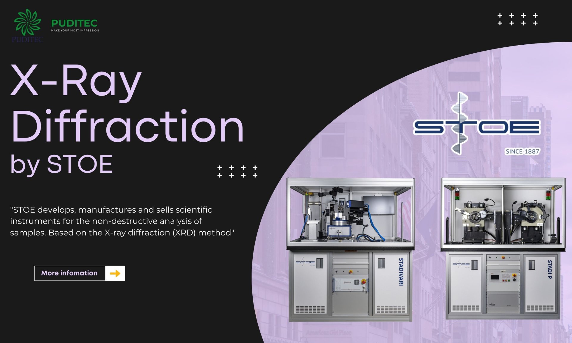 STOE develops, manufactures and sells scientific instruments for the non-destructive analysis of samples. Based on the X-ray diffraction (XRD) method, these systems characterize single crystals and powder samples and give answers to which substances a particular powder or crystal contains or at which positions atoms in solid bodies