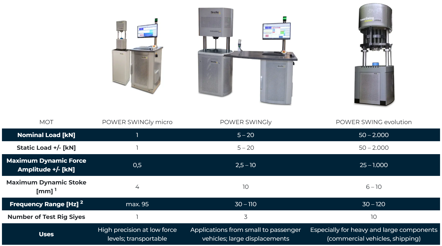 The POWER SWING MOT is our all-purpose tool among the SincoTec test systems to generate static and dynamic testing of components and materials especially in the infinite and finite domains of fatigue life. The test rig can be used for almost every component and can generate all load types.