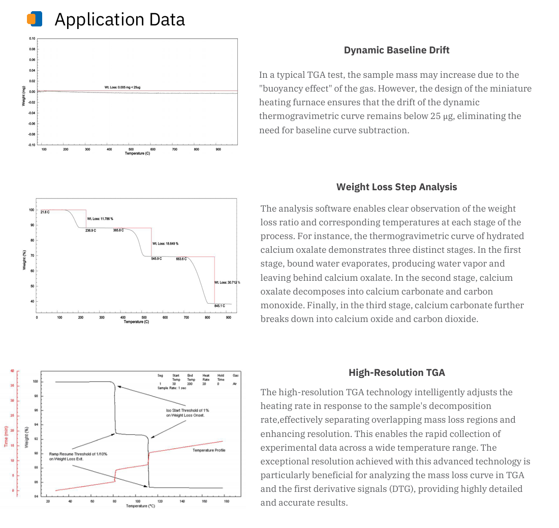 High-sensitivity microbalance with 0.1 μg resolution ensures precise measurement of trace samples. Low-drift and thermal insulation technology maintain stability and accuracy even during long or high-temperature experiments.